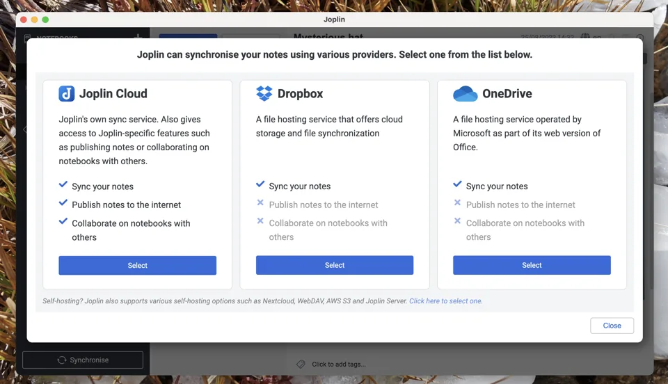 One standout feature of Joplin is its ability to sync across multiple devices. You can use cloud services like Dropbox, OneDrive, or even your own WebDAV server to ensure your notes are always available. Unlike many proprietary apps, Joplin gives you full control over your data.
