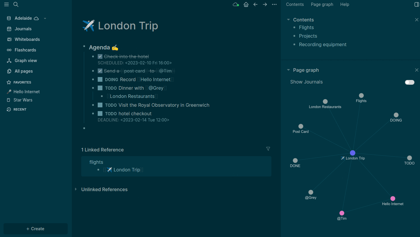 Logseq is an open-source outliner that doubles as a personal knowledge management system. While it’s popular for managing tasks and projects, it’s also a powerful tool for journaling. Its daily journal feature automatically creates entries for each day, making it easy to capture thoughts and reflections.